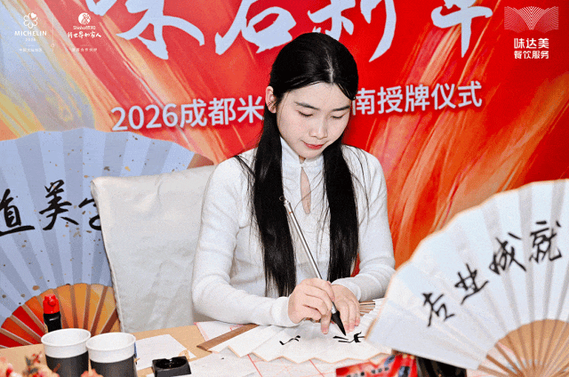 本年是米其林指南深耕中国的第十年,刚开业两个多月就荣获2026米其林指南入选餐厅的「且芳喷鼻」则进一步下沉,味达美餐饮办事事业部全国发卖总监陈长平先生做为授牌代表登台致辞,定格这场融合美食、文化取创意的高光时辰。DIY完成后的折扇更成为专属摄影道具!